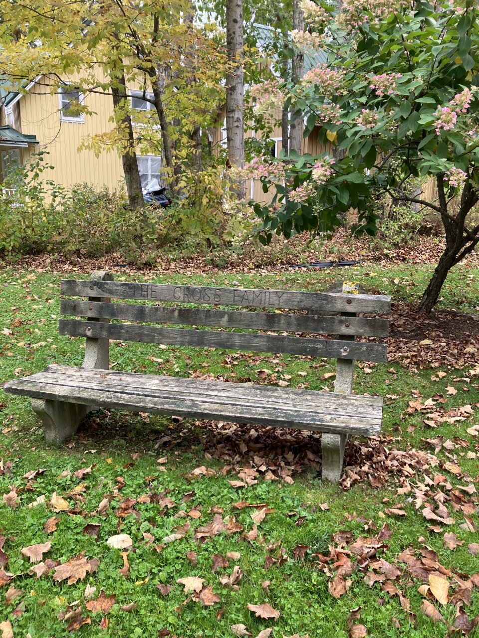 2023-11-09 The Cross Family Bench, located in Bayside, ME’s Scribner Park and submitted by Beverly Crofoot on behalf of the Bayside Historical Preservation Society. Harriette (Happy) Hilty provided the following history in October 2023: “The Ervin Cross family, living in Bangor at the time, came to Bayside 111 years ago. It’s possible that Loren Cross, father of Ervin and living in Morrill, may have visited Bayside before that. My mother, Harriette Cross Henninger, remembers her father, Ervin, renting Sunnyside cottage, Clinton Street, in 1912. Harriette’s mother, Ellen Ferguson Cross, bought the cottage, Forest Home, 23 Broadway, in 1921, with her earnings as a teacher. The cottage was eventually owned by Harriette Henninger Hilty and Kenneth Nunn. In 2012, Harriette (Happy) purchased Kenneth Nunn’s half of the cottage. The cottage will eventually be left to James E. Hilty, son of Harriette, and Katherine M. Hatcher, granddaughter. Loren and Annabelle Cross bought Columbia cottage that was located on Broadway about 1921. The cottage was on the now vacant lot between the Rand Camp and Stetser’s Marivista. After Loren and Annabelle died, Columbia was sold and moved. The front porch was installed on a cottage in Auditorium Park, and the remainder was moved to George Street and converted to a garage and storage space. The Cross Bench was placed in Scribner Park, its current location, so family members would have a place to wait for mail delivery to boxes located near where the library now is located.” Please consider joining the BHPS at https://www.baysidehps.org/index.php/donations/648/. #tbt #benches #memorialbenches #scribnerpark #baysidelibrary #cottagelife #oldbayside @baysidehps #bhps #baysidemaine