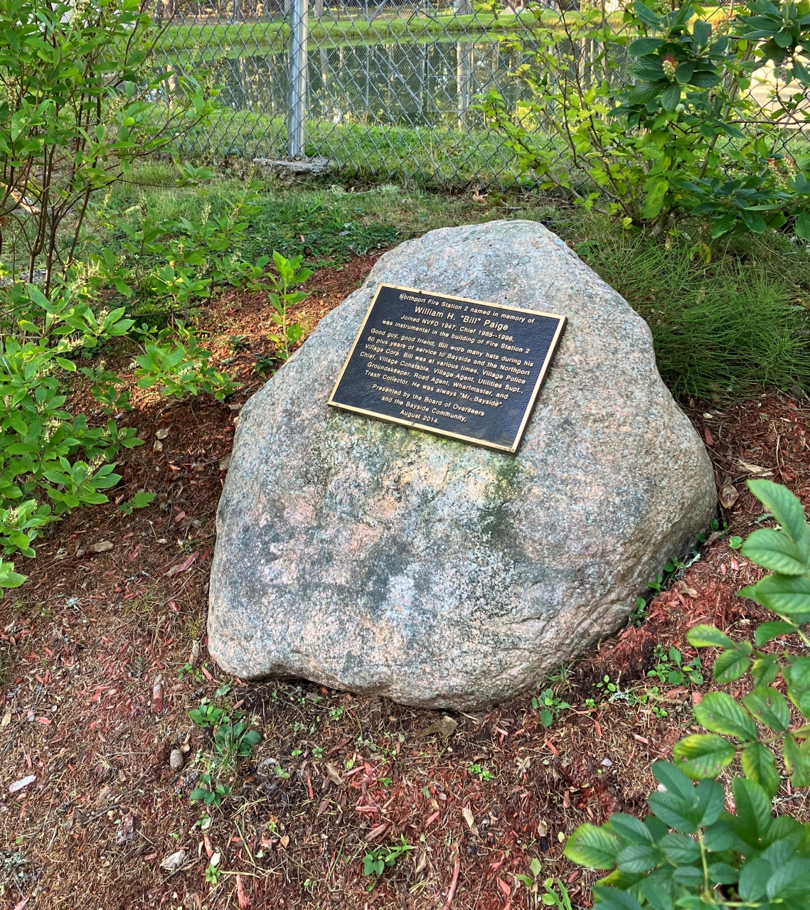 2023-11-16 Honoring Bill Paige, photographed at the Bluff Road fire station in Bayside, ME by Beverly Crofoot. The Plaque reads: “Northport Fire Station # 2 named in memory of William H. “Bill” Paige; Joined NVFD 1947, Chief 1985-1996; was instrumental in the building of Fire Station 2. Good guy, good friend. Bill wore many hats during his 60 plus years of service to Bayside and the Northport Village Corp. Bill was at various times, Village Police Chief, Village Constable, Village Agent, Wharfmaster, and Trash Collector. He was always ‘Mr. Bayside’; Presented by the Board of Overseers and the Bayside Community. August 2014.” #lifetimeofservice #firestationdedication #publicservice #baysidemaine See less