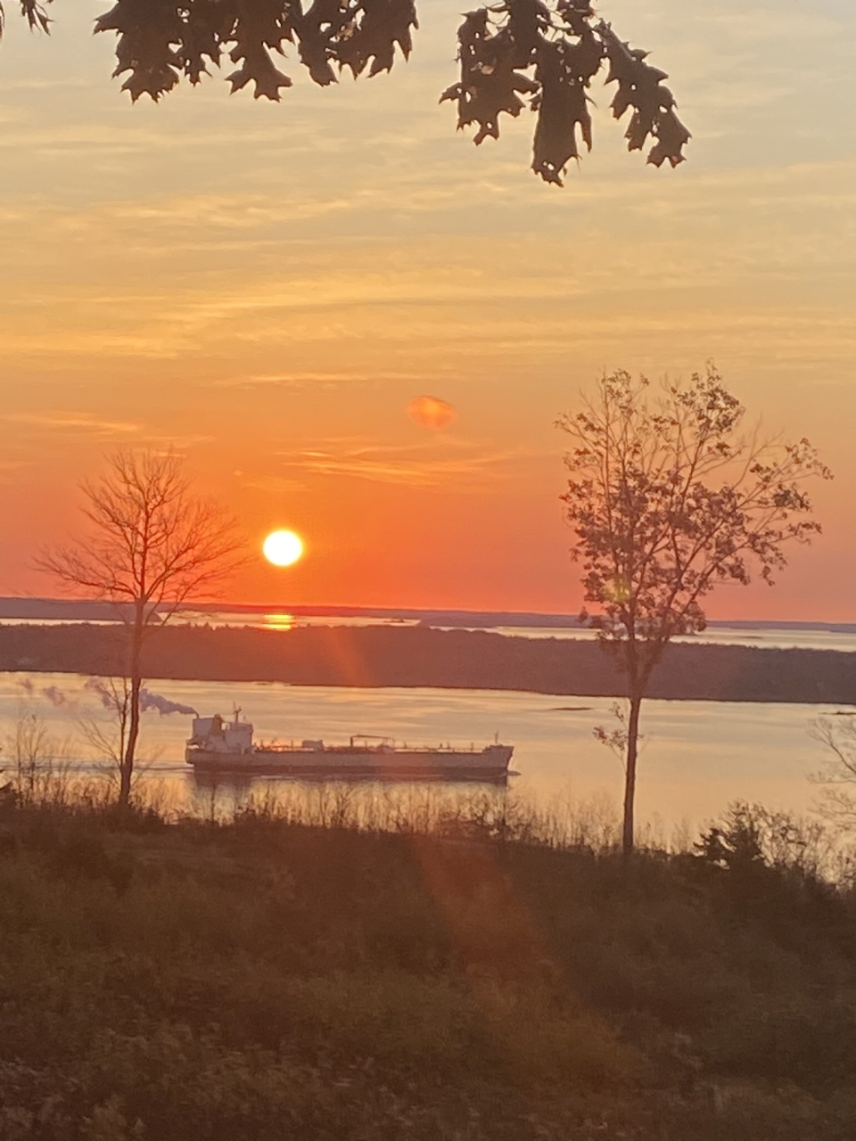 2023-11-17 Bay Transit, photographed yesterday morning from Bluff Road in Northport, ME by Petra Hartlova. #baytransit #sunrise #penobscotbay #northportmaine #baysidemaine See less