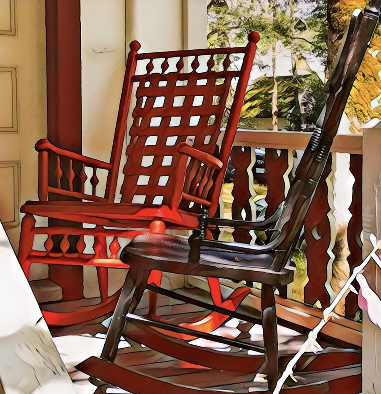 2023-11-20 Porch Rockers, photographed last summer in Bayside, ME by Cookie Santerre at Shady Grove, the cottage museum maintained by the Bayside Historical Preservation Society (https://www.baysidehps.org/). #rocker #rockingchair #porchlife #cottagelife @baysidehps #bhps #baysidemaine