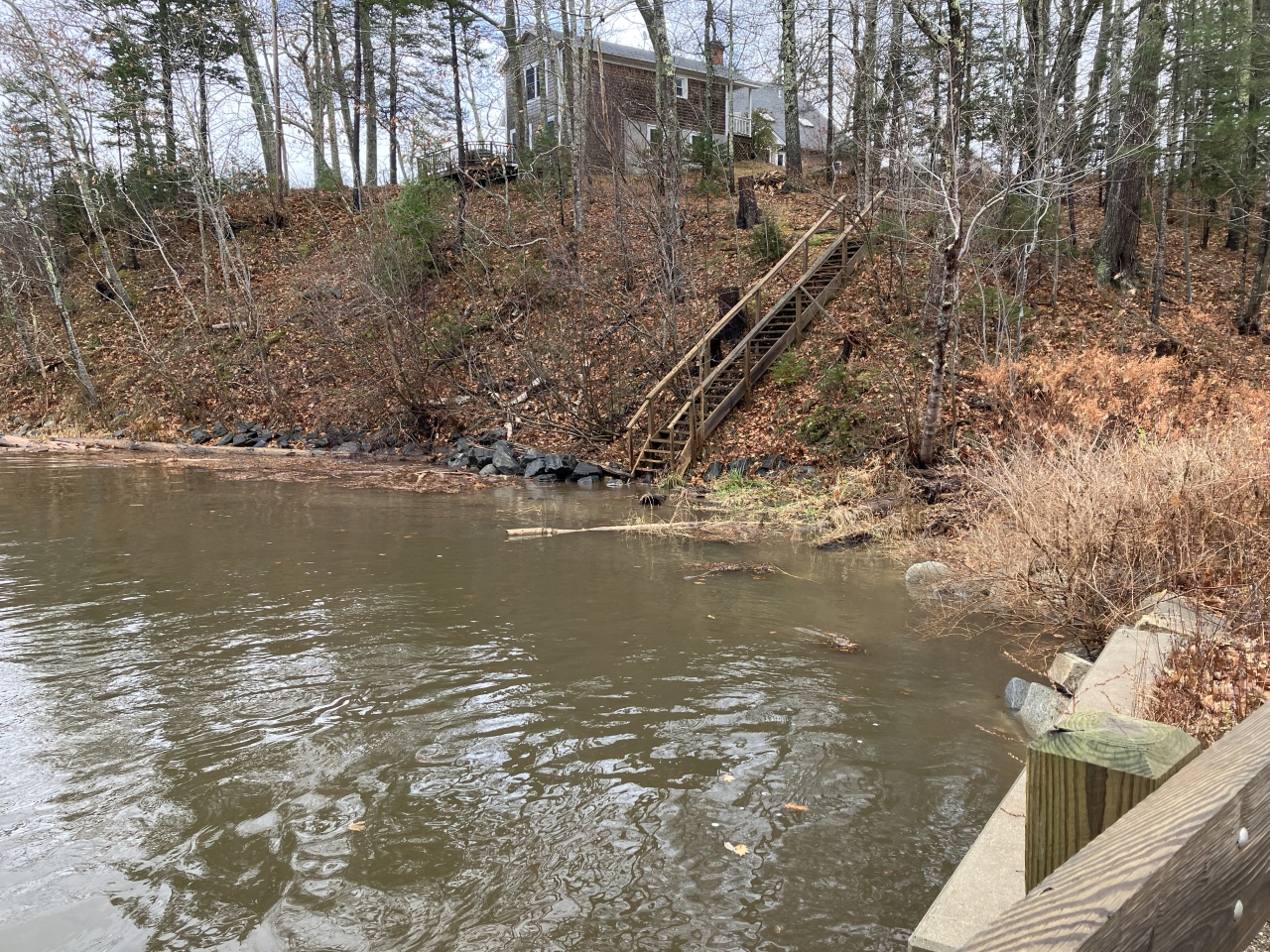 2023-11-27 High Tide at Kelly Cove, photographed from Shore Road in Bayside, ME by Beverly Crofoot. #hightide #kellycove #baysidemaine