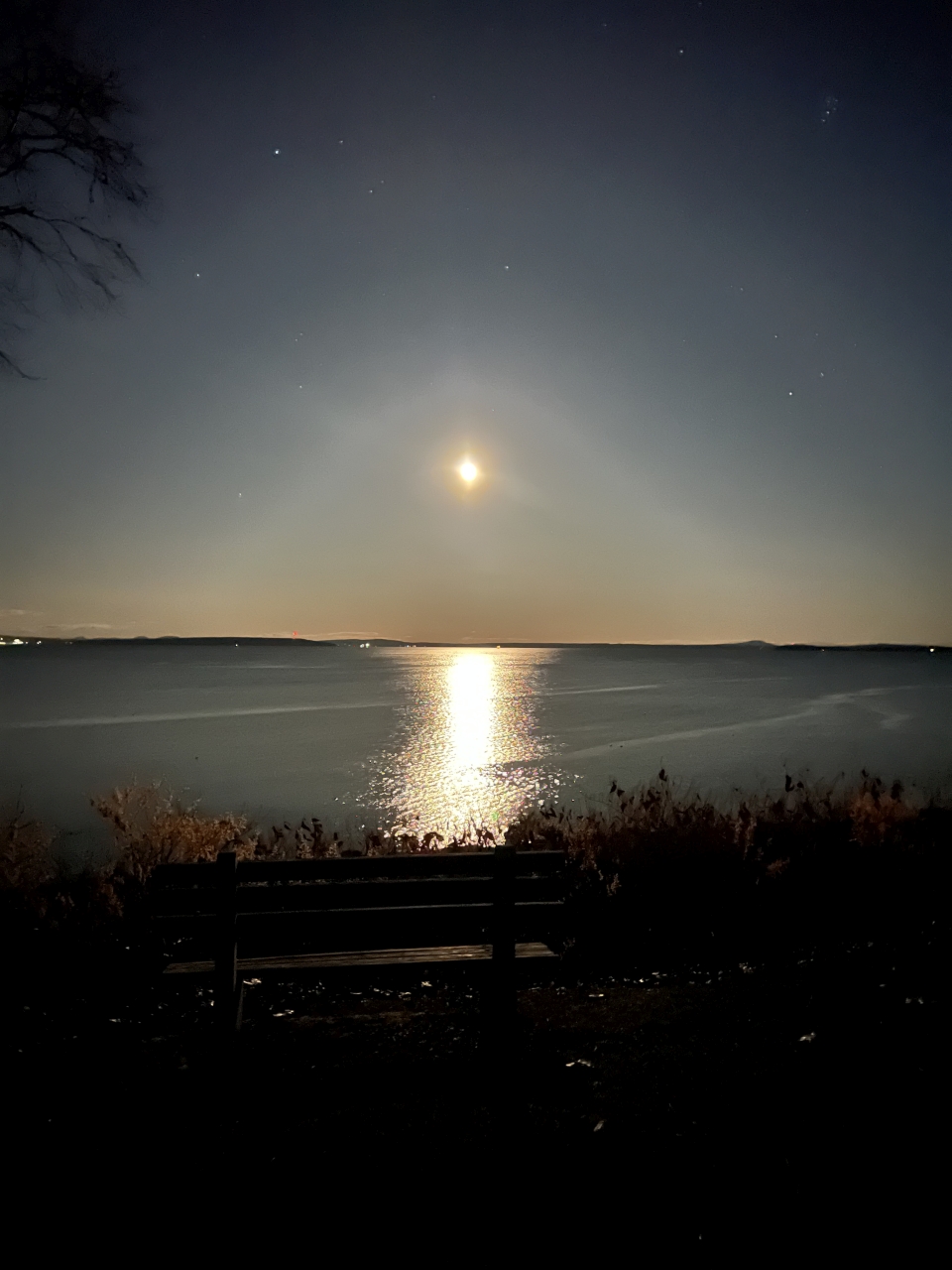 2023-12-01 Bayside Moonrise, photographed from Auditorium Park in Bayside, ME by Jutta von Dirke. “Watching the moon rise over the bay never gets old.” #moon #moonrise #searsisland #turtlehead #penobscotbay #baysidemaine