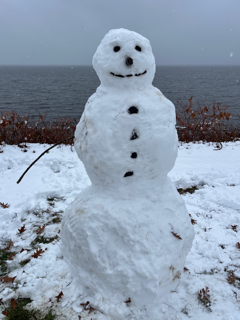 2023-12-04 First Snowman of the Season, photographed in Bayside, ME by Leanne Budolfson. “Had some fun on our first real snow day! Perhaps Bayside’s first snowman of the season?” #snowman #firstsnowman #winterwonderland #baysidemaine