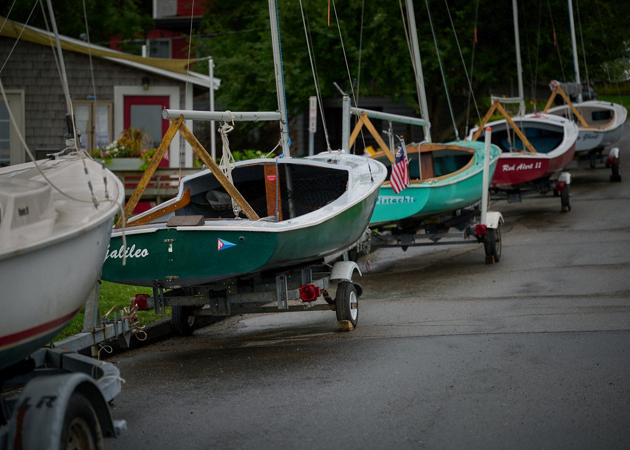 2023-12-11 Line Up, photographed in August at the Northport Yacht Club in Bayside, ME by Steve Nelson and showing the sailing school vessels neatly lined up, on their way to storage for the season. Looking for a Bayside-oriented gift? Steve sells a 2024 calendar using his photos at https://www.baysidephotos.com/product/2024-wall-calendar/. @nyc_bayside @snlsn #endoftheseason #pullingboats #sailboats #sailingschool #baysidemaine
