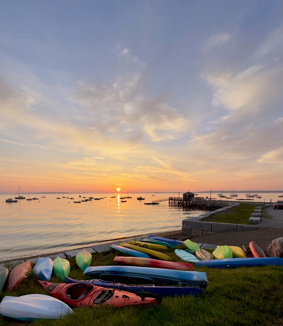 2023-12-15 Begin Again, photographed near the Ruggles Park beach in Bayside, ME by Judy Berk. #sunrise #serenity #anotherdaybegins #kayaks #thewharf #penobscotbay #baysidemaine