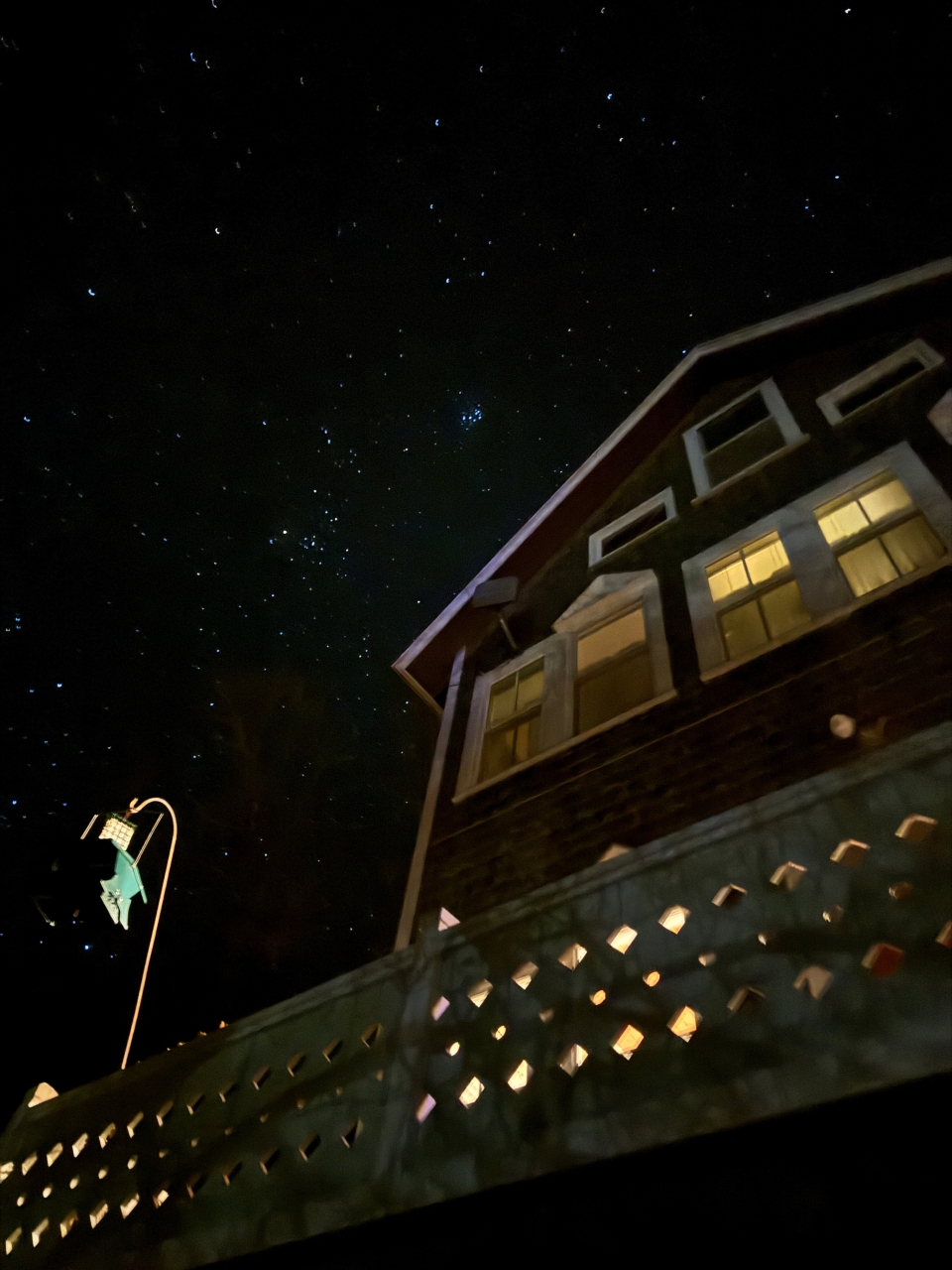 2023-12-16 Bright Night Sky over AC Hopkins cottage, photographed on Bay Street in Bayside, ME by Shannon Blaisdell. #starrynight #clearnightsky #brightsky #cottagelife #baysidemaine