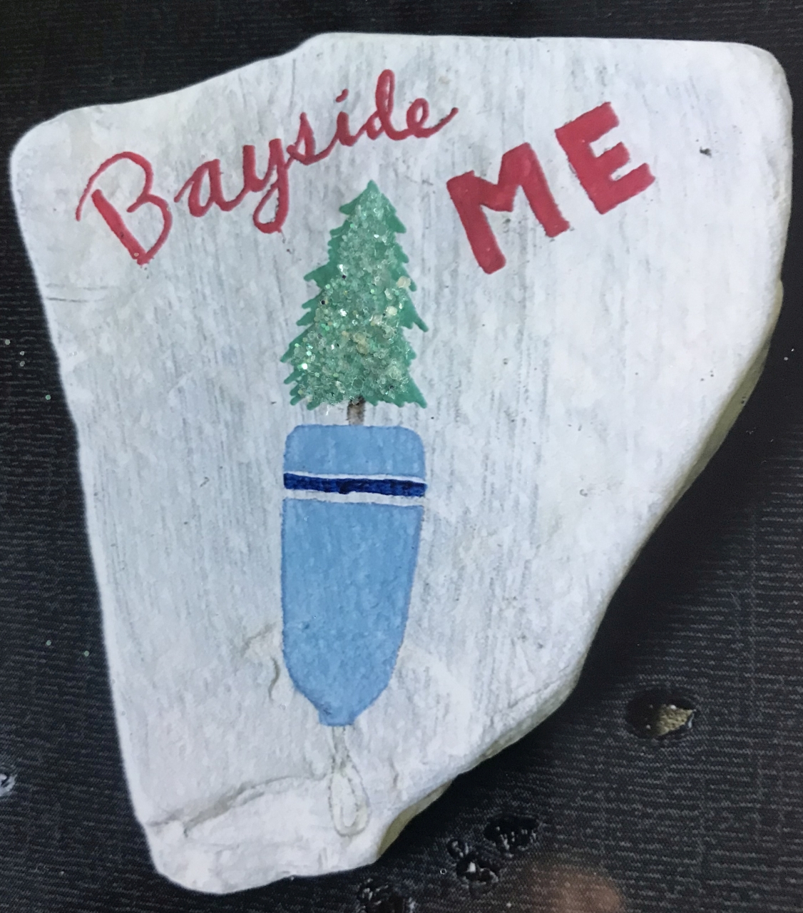 2023-12-29 Bayside Rocks the Holidays, photographed by Cookie Santerre and painted by Rory Sauereisen. #baysiderocks #paintedrock #artsandcrafts #beachcanvas #rockart #beachart #baysidemaine
