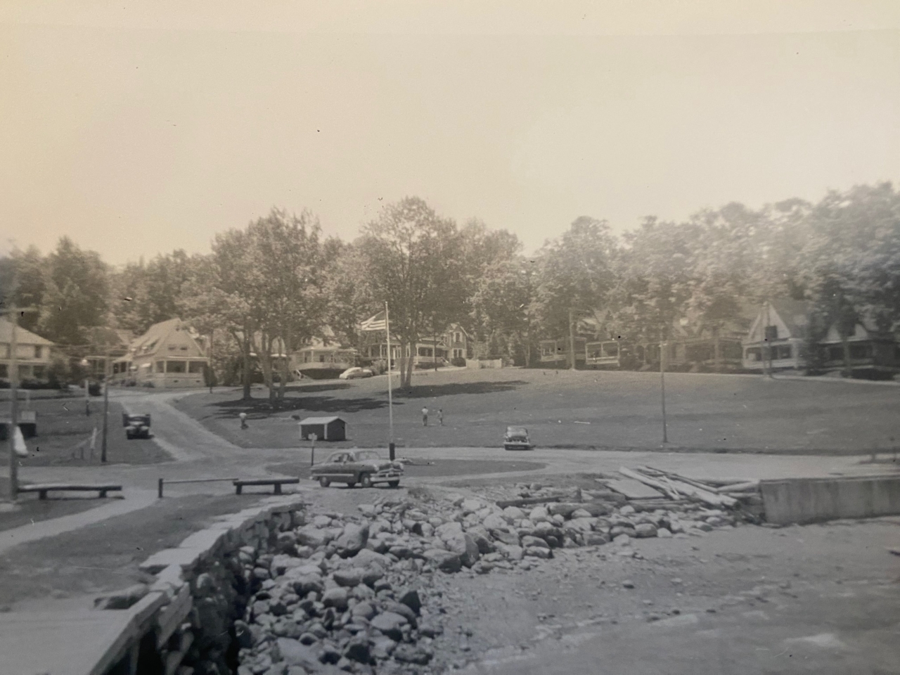 2025-01-16 Ruggles Park in Bayside, ME, photographed by John Coleman and submitted by Dave Witherill, who shares: “This photo was taken by a friend of mine, John Coleman, in 1954. We were in a music group together and, one day, he mentioned spending summer vacations at a place called Bayside in the 50s.” #tbt #1954 #publicpark #rugglespark #parkrow #baysidemaine