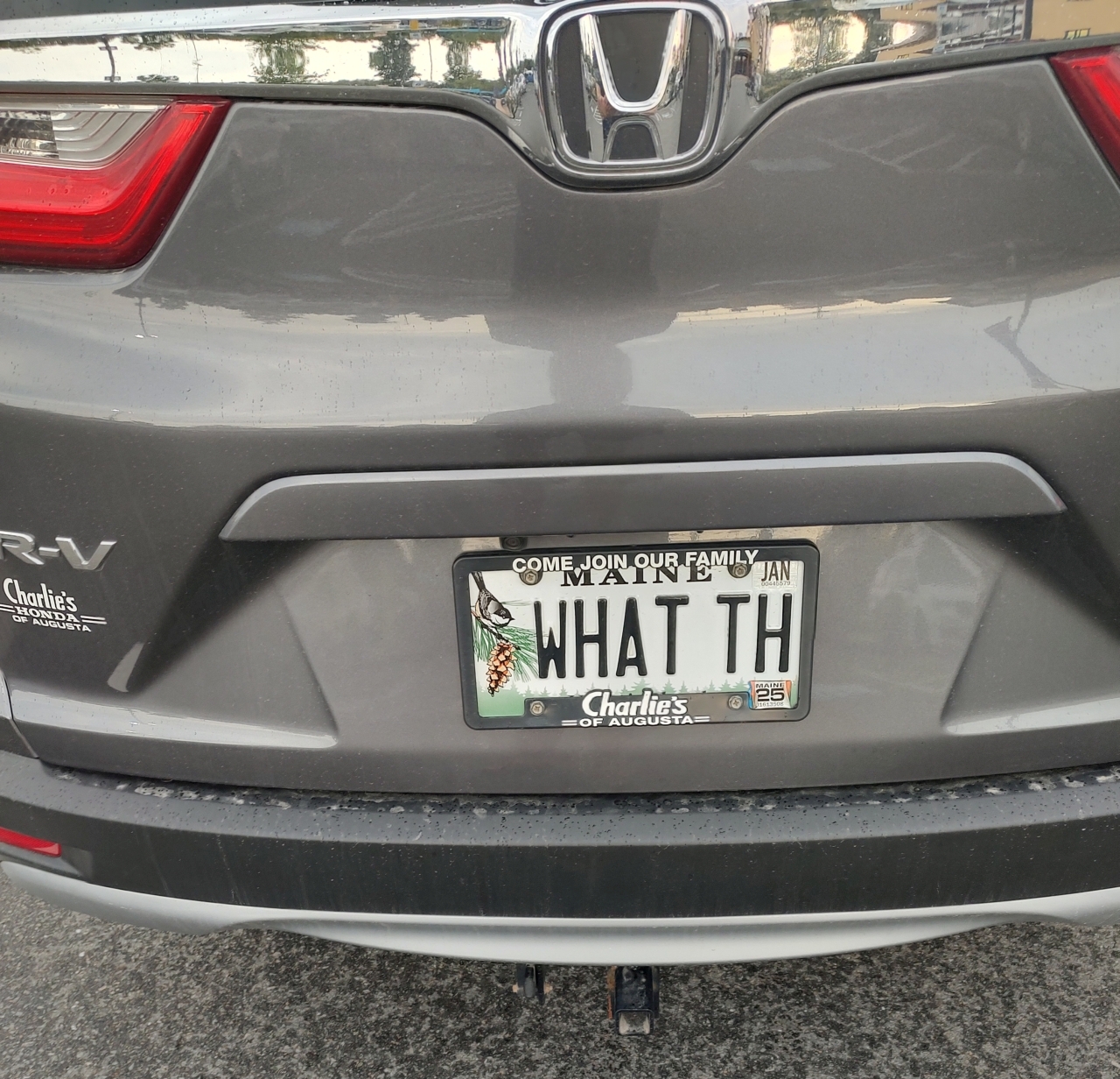 2025-01-22 Vanity Plate, photographed somewhere in Maine by Tim Samway. “My new favorite plate.” #vanityplate #whatthe #whatth #somewhereinmaine #baysidemaine