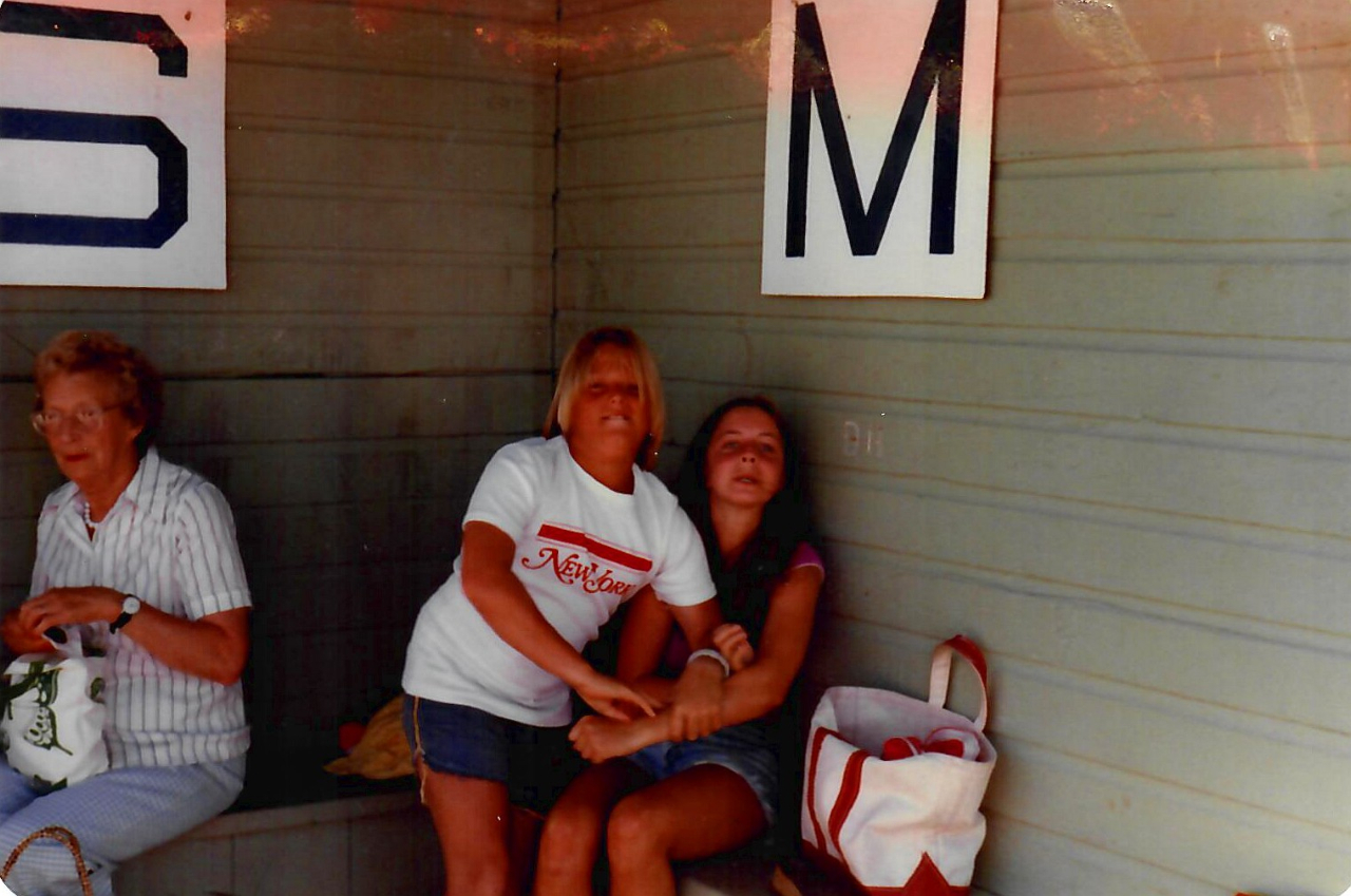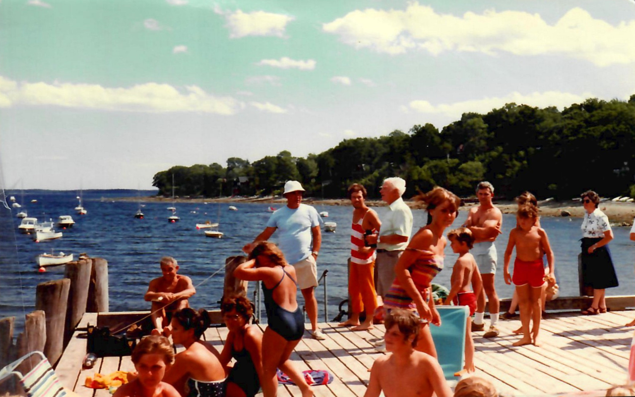 2025-04-17 Watching the Races, photographed by Lindsay Huntoon in 1980 on the Bayside, ME wharf during one of the Northport Yacht Club’s John Short Series Races. Pictured are Barbara Webster, Willie Reardon and Meredith Lincoln. #tbt #raceday @nyc_bayside #sailing #sailboatraces #spectatorsport #crowdedwharf #thewharf #baysidemaine