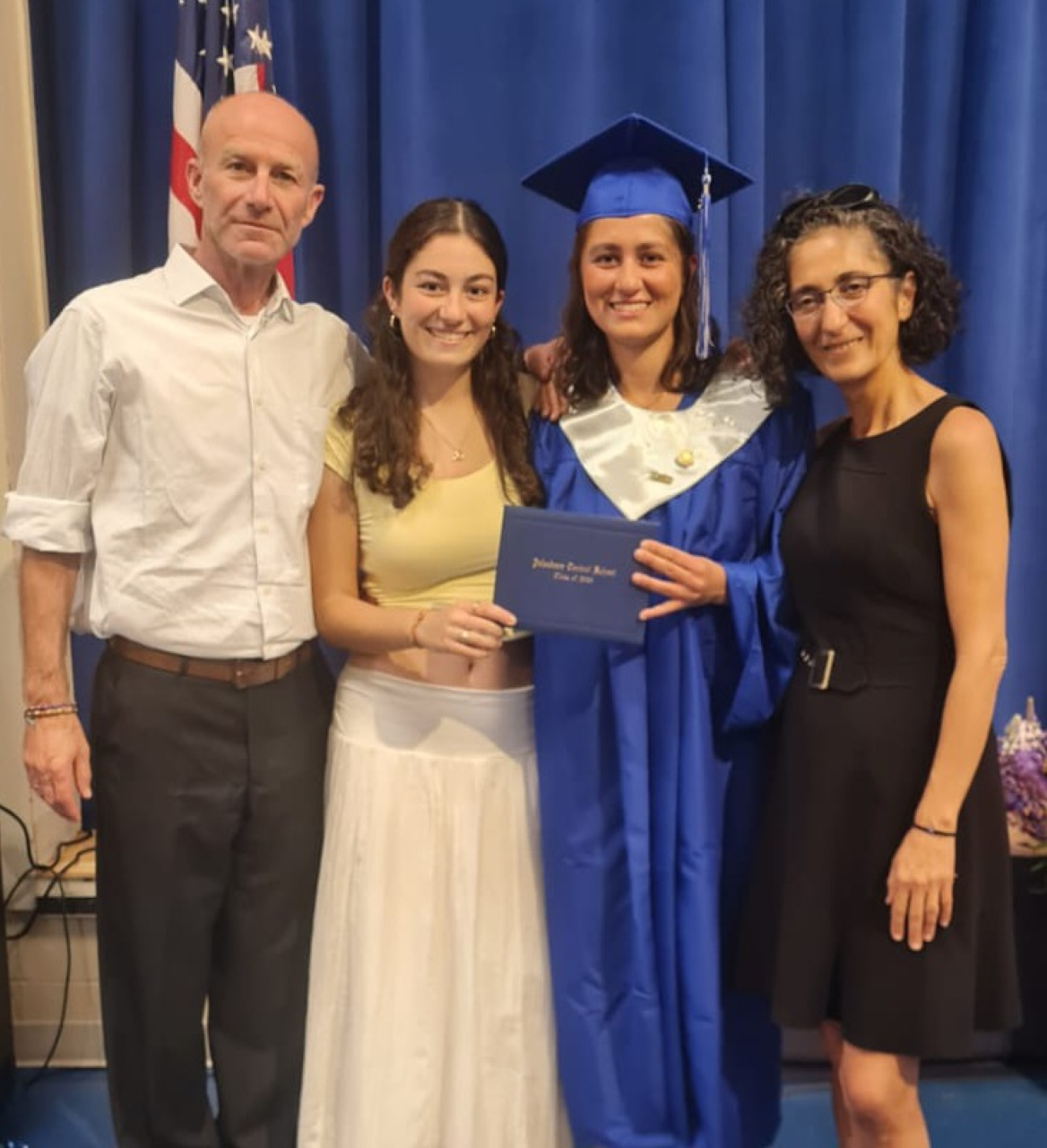 2025-04-27 King’s Day, submitted by Ned Lightner. “One of the biggest celebrations in the Netherlands is King’s Day, which takes place on April 27th. Seen in photo is left to right Alexa Lightner, who lives in Amsterdam, with father Ned, step mom Kathleen, brother Jacob, and Jacob’s partner Annie, who are having a great visit.” #kingsday #thenetherlands #netherlands #familygathering #orange #wearingorange #celebration #baysidemaine