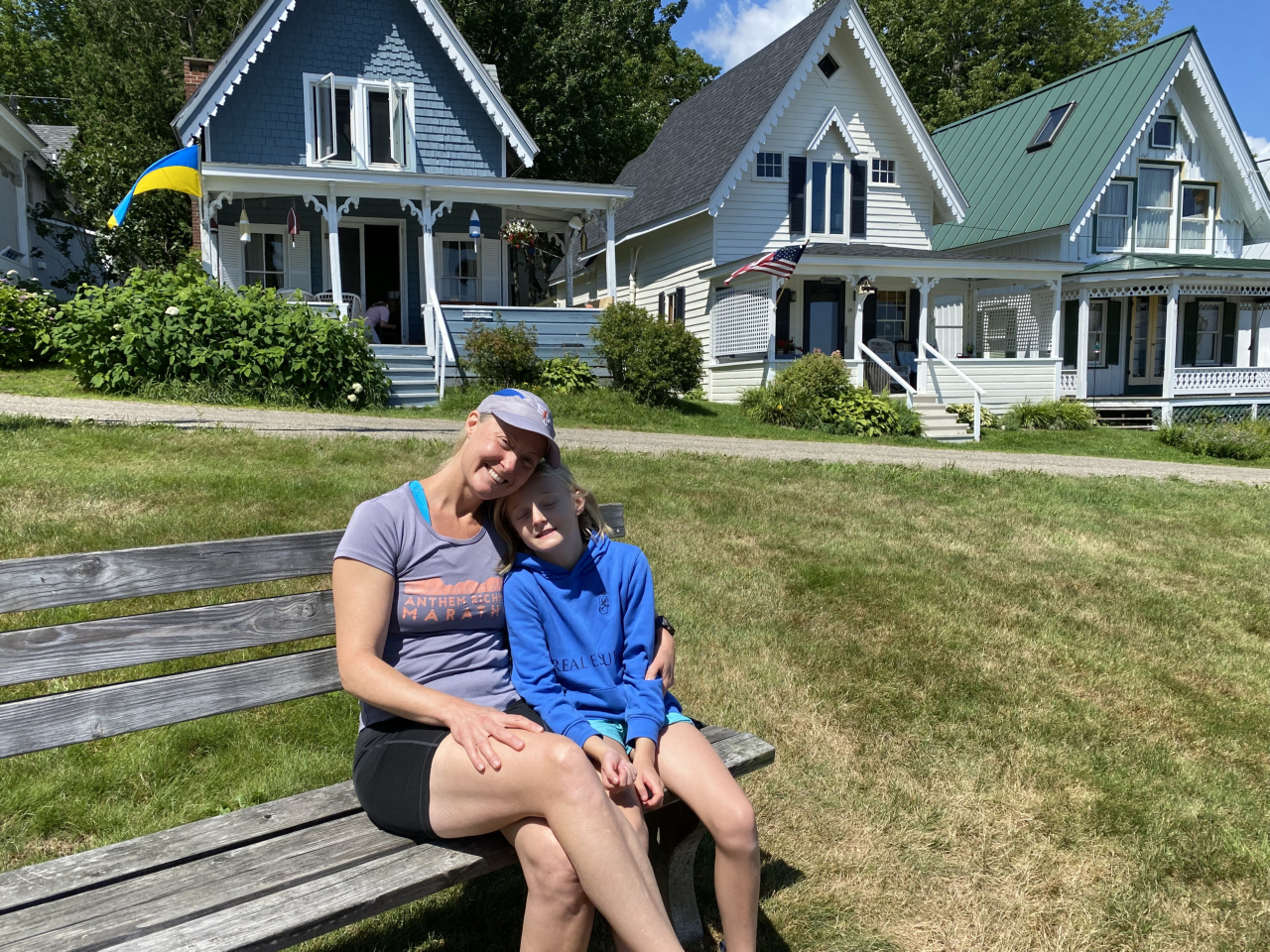 2025-10-06 Take a Hike, photographed in Boston by Kristen Gohr. Lindsay Huntoon and Tim Samway from TEAM BAYSIDE participated in the Boston Marathon Jimmy Fund Walk. The entire route from Hopkinton to Boston is 26.2 miles. Lindsay started in Wellesley at the 13.1 mile mark, and she joined up with Tim who started in Newton at the 10 mile mark. This photo of Tim and Lindsay was taken about four miles from the finish line in Boston. It was a very hot day, and they stopped for a rest in the shade. The Walk is a fundraiser for the Jimmy Fund/Dana Farber Cancer Institute. Congratulations, Lindsay and Tim! @jimmyfund @danafarber #walkforacause #jimmyfund #jimmyfundwalk #teambayside #doinggood #boston #baysidemaine