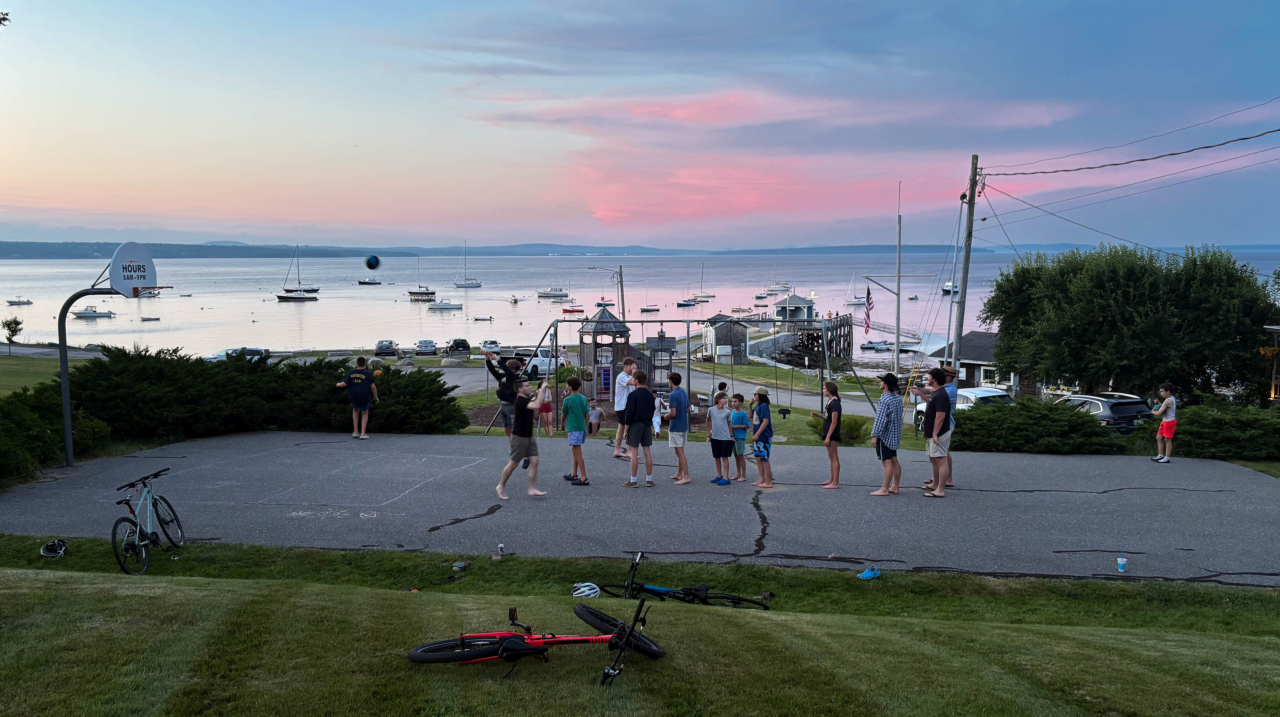 2025-08-05 Teamwork, photographed by Judy Scholhamer from her cottage in Bayside, ME last week. “Loved sitting on our Bay Street porch and watching the teamwork of unloading gear after the [Northport Junior Yacht Club’s Warren Island] overnight campout! It really does take a village!” @nyc_bayside #teamwork #camping #campout #sleepdeprived #cantwaittoshower #warrenisland #warrenislandstatepark #northportjunioryachtclub #baysidemaine