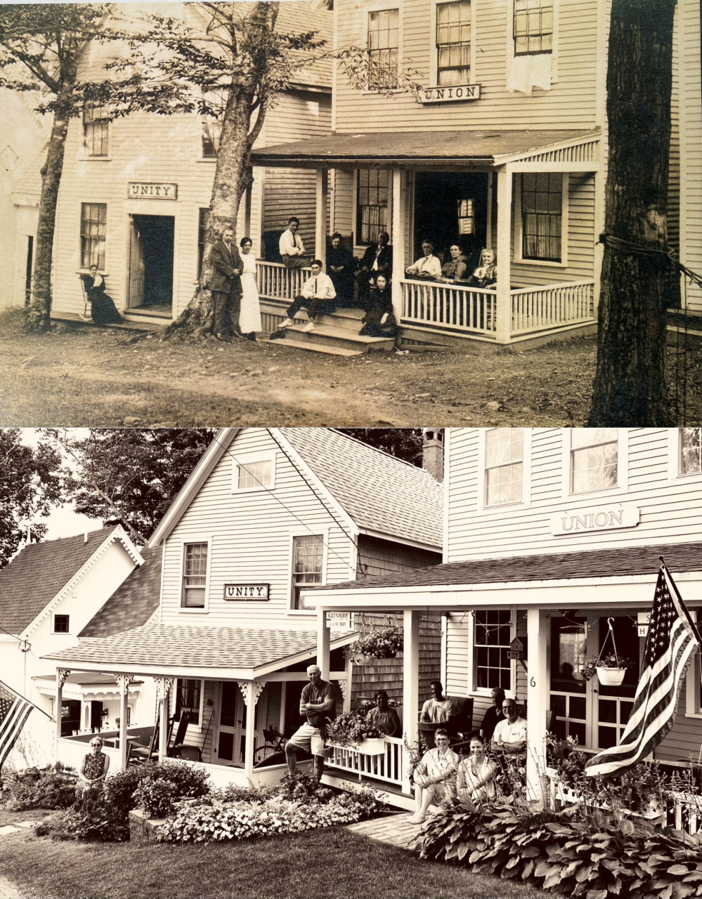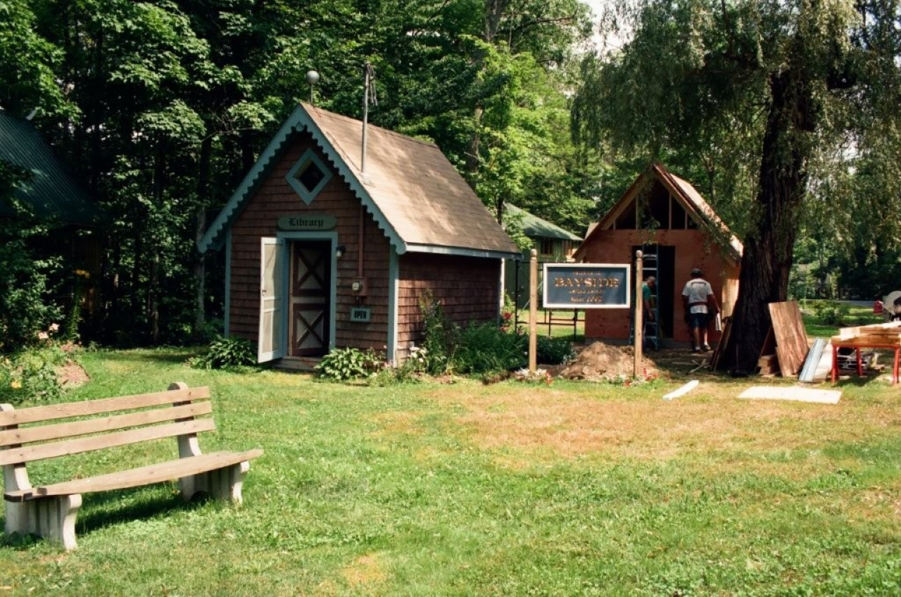 2025-03-06 Pioneer Cottage, located on Merithew Square in Bayside, ME, submitted by Beverly Crofoot on behalf of the Bayside Historical Preservation Society (https://www.baysidehps.org). The following description, by Beverly, is published with the photo on the website of the Penobscot marine Museum (www.penobscotmarinemuseum.org): Built in 1869 by Isaac Cunningham, a farmer from Union, Pioneer Cottage was reported by The Republican Journal (1879) to be the first private dwelling erected at Northport Wesleyan Grove Campmeeting, which was founded in 1849. For the preceding years Cunningham and other families camped under tents on small platforms, 12’x18′, for two weeks during the campmeeting. Town Methodist congregations also camped in tents, later building large three-story Society cottages. Today these cottages, circling Auditorium Park and Merithew Square, still bear the town names. The campmeeting newspaper, The Sea Breeze, reports in 1887: “Old Pioneer cottage on Merithew Square has been so thoroughly Elizabethianized, the old residents will hardly recognize it. It is owned by J. A. Clement, of Searsport, and I. J. Johnson, of Bucksport.” Mr. Johnson was a Civil War Veteran, having served in the 19th Marine Regiment Co. E, 6th Battery, Heavy Artillery. In 1897 Rev. William J. Wilson and his wife celebrated their Golden Anniversary at Pioneer Cottage with 100 guests. The couple was presented seventy-five dollar old pieces. A century later the current owners Harold and Andrea Hede found pieces of the original canvas tent nailed to a board at the rear of the cottage and preserved them by covering them over with lap siding. #tbt #pioneercottage #historylesson #cottagelife #campmeeting #merithewsquare #oldbayside @baysidehps #bhps #baysidemaine