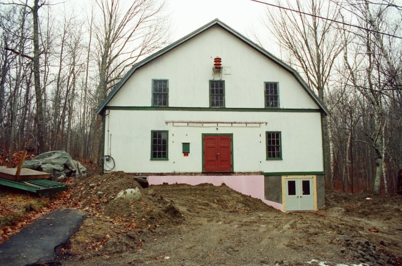 2025-12-18 Porchless, photographed in 1993 just after the foundation was installed under the Bayside, ME Community Hall but before the porch was reinstalled. #1993 #porchless #raisethehall #foundation #foundationwork #communityhall #baysidemaine
