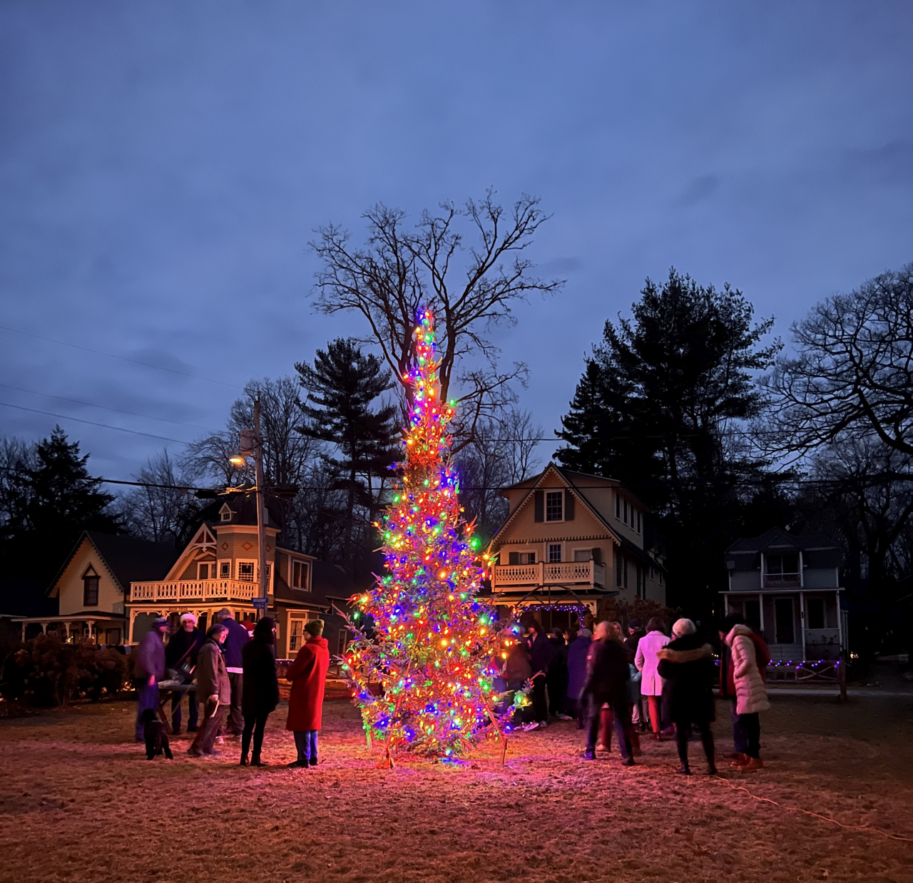 2025-12-28 Gather Around the Tree, photographed Christmas Eve in Bayside, ME’s Merithew Square Park by Brynna Ledyard. “Best of the season and Happy New Year to everyone!” #caroling #christmascaroling #merrychristmas #christmastree #baysidemaine